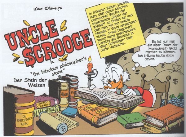 Noch deutlicher wird seine Philosophie in „The Fabulous Philosopher’s Stone“ (Der Stein der Weisen) (1955). Auf der Suche nach dem Stein der Weisen erkennt Dagobert, dass grenzenloser Reichtum den Wert des Reichtums vernichtet. Geld hat nur Bedeutung, wenn es erarbeitet, erkämpft, verdient ist. Barks betonte in einem Interview: