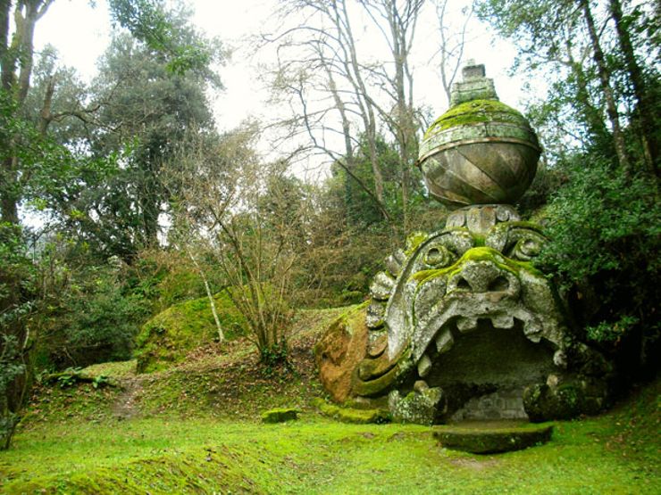 In einem Tal in der Nähe des Dorfes Bomarzo in Italien liegt ein geheimnisvoller Garten, der unter vielen Namen bekannt ist. Manche nennen ihn wegen seiner Nähe zum Dorf den Garten von Bomarzo. Sein Schöpfer nannte ihn Sacro Bosco oder Heiliger Hain. Aber die meisten kennen diesen wundersamen Ort als den Garten der Monster, aus Gründen, die jedem, der ihn betritt, klar sind.