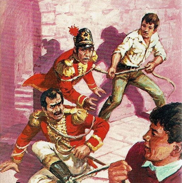 Aber die halsbrecherische Flucht, das Auf- und Abklettern an Seilen außerhalb eines Palastes, die Flucht durch die Kanalisation und das Semi-Action-Finale in der glitzernden Kuppel der St. Georgs-Kirche, alles im Namen der Aufdeckung einer kriminellen und politischen Verschwörung, entspricht eher dem großen Stil von Ludlums Spionagegeschichten als Flemings persönlicheren Erzählungen. Es ist etwas ganz anderes, wenn man bedenkt, dass das Härteste, mit dem es die Jungs bisher zu tun hatten, ein paar akrobatische Zwerge waren, aber nur eine mürrische Seele würde sich hier nicht köstlich unterhalten lassen. Das Abenteuer ist nicht so gut wie Die flüsternde Mumie (1965) oder Der Fluch des Rubins (1967), die ihre Handlung kompliziert und mit barocken Elementen aufgebaut haben, aber es ist weitaus unterhaltsamer als der letzte Ausflugsversuch in Der grüne Geist (1965), in dem die Jungs scheinbar endlos in einem Höhlensystem sitzen. Es gibt auch eine Szene, in der sie von etwas berauscht werden, das wahrscheinlich Opium ist, was sowohl urkomisch als auch sehr unterhaltsam ist.