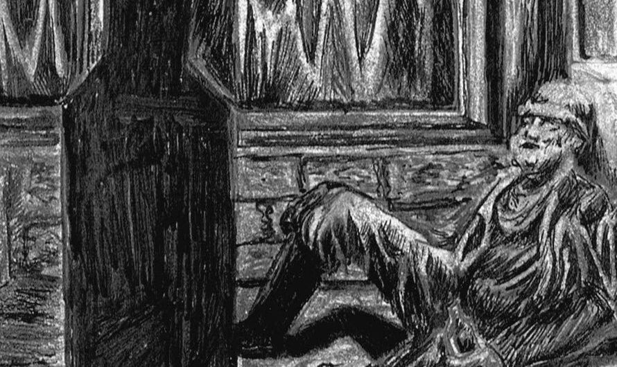 Das Gebäude war einst weiß gestrichen worden, aber jetzt war es grau und abgeblättert, und die schwarz-goldene Tafel am Giebel war so abgenutzt, dass man die Worte „Esoterischer Orden von Dagon“ nur noch schwer lesen konnte. Es war zweifellos ein erniedrigender, heidnischer Kult, der ein Jahrhundert zuvor aus dem Osten importiert worden war, zu einer Zeit, als die Fischerei in Innsmouth am Ende zu sein schien.