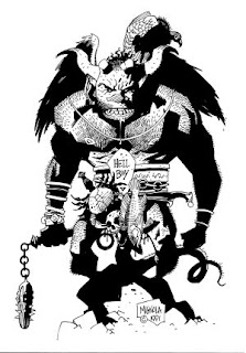 Tatsächlich aber hatte die erste Skizze, die für die Great Salt Lake Comic Con 1991 vorgestellt wurde, kaum etwas mit der heute berühmten Figur zu tun. Sie zeigt einen behaarten, fast höhlenmenschenartigen Dämon mit vier Hörnern, Flügeln und einer Krabbe und einem Fisch an seinen Gürtel. Auf dem Gürtel stehen die Worte „Hell Boy“. Mignola hielt nicht viel von dieser Skizze und tatsächlich war der Name für ihn nur ein Witz. In einem Interview sagte Mignola: