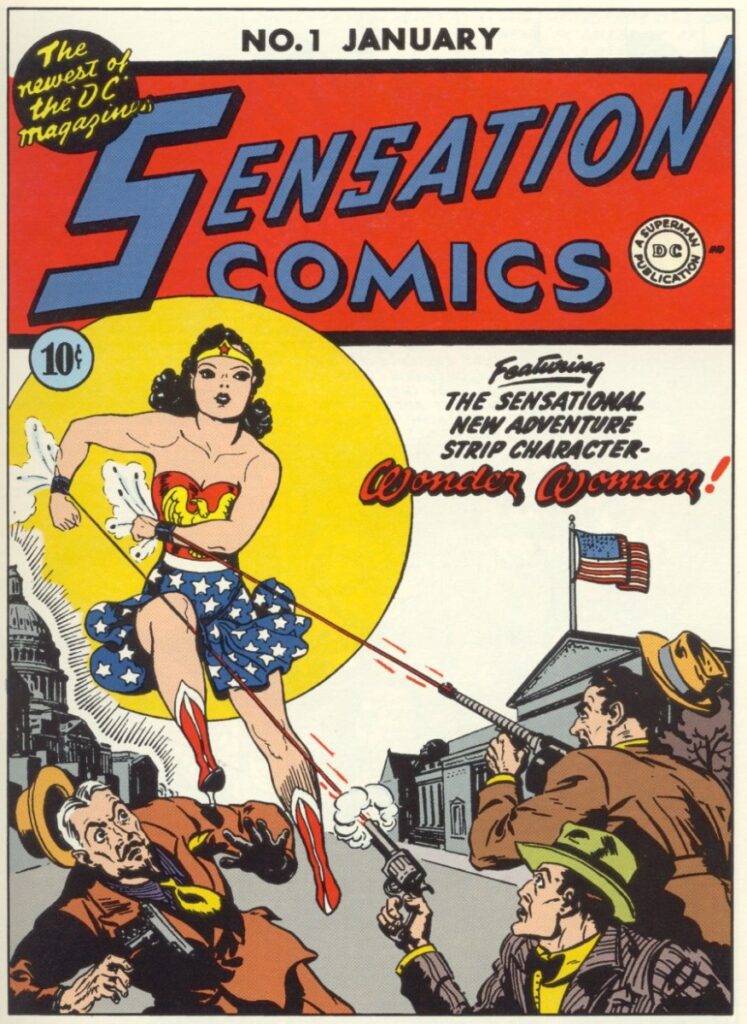 Es gibt eine Szene im ersten Wonder-Woman-Comic von 1942, die man nicht vergisst, wenn man sie einmal gesehen hat: Eine Frau im Sternenbanner-Bikini und mit roten Stiefeln schleudert einen Nazi-Panzer durch die Luft, als wäre es Spielzeug, und lächelt dabei. Es ist ein breites, beinah kindliches Strahlen, das echte Freude an der eigenen Stärke ausdrückt. Das war 1942 in einem amerikanischen Mainstream-Comicheft. Mit einer Frau als Protagonistin.